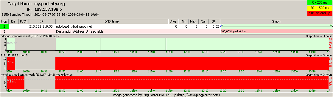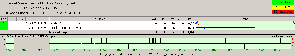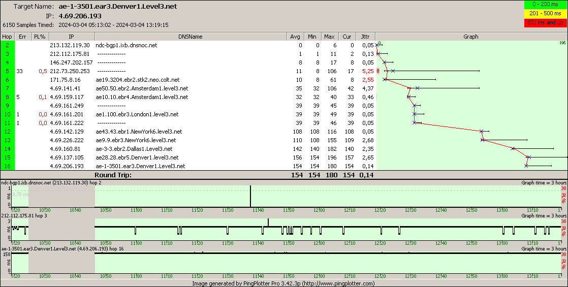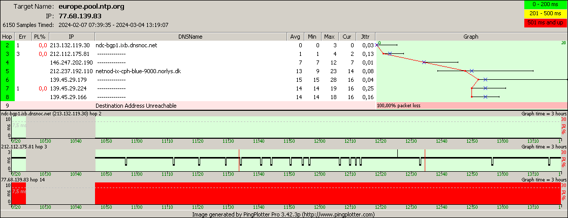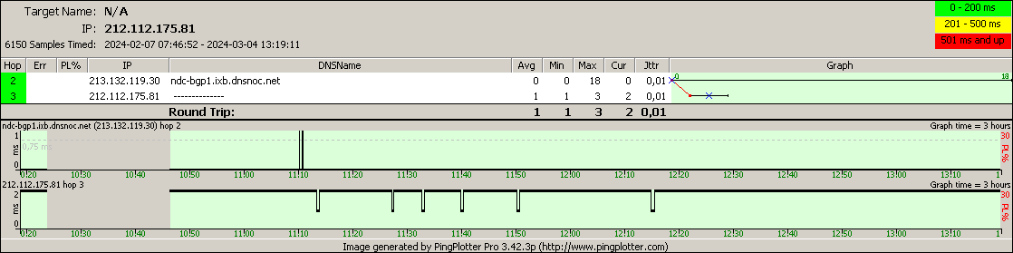 OBS. Varje routeingpunkt i trace:en ping:as inviduellt med 05 ms fördröjning,